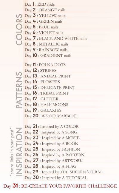 Se llama Desafío 31 días, y consiste en que cada día se cambie la manicura de acuerdo a una lista. Cada uno puede interpretar la lista como quiera.