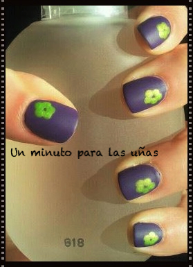 Me gusta mucho este color para las uñas, pero para no dejarlas pintadas y ya está, le he hecho unas florecitas sencillas en verde, y le he dado un acabado en mate. Me encanta el efecto!!