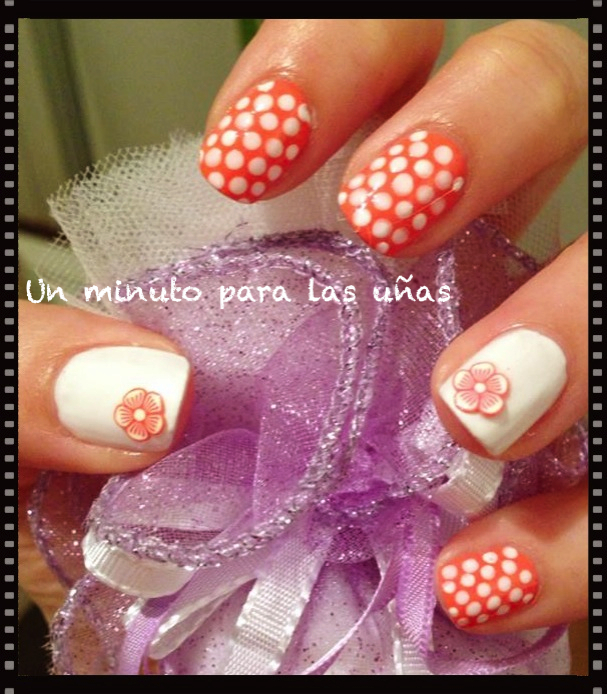 Últimamente no me apetece seguir con el desafío, pero me compré este esmalte de KIKO y tenía muchas ganas de estrenarlo. Además descubrí que tenía unas flores de fimo del mismo color, así que me lancé con este diseño de puntos.
