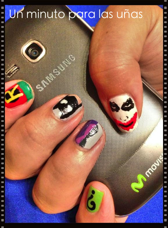 Al principio pensaba hacer un diseño sencillo, con el símbolo del murciélago en alguna uña y poco más… Pero lo estuvimos discutiendo y al final se decidió hacer un personaje en cada uña.