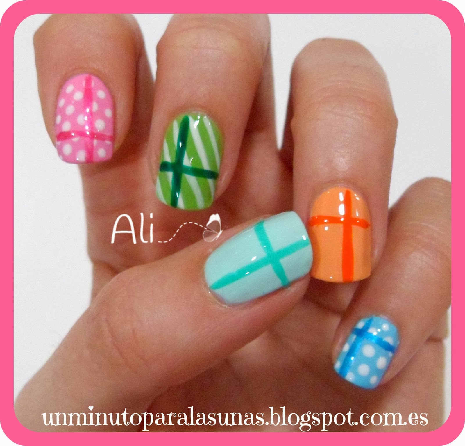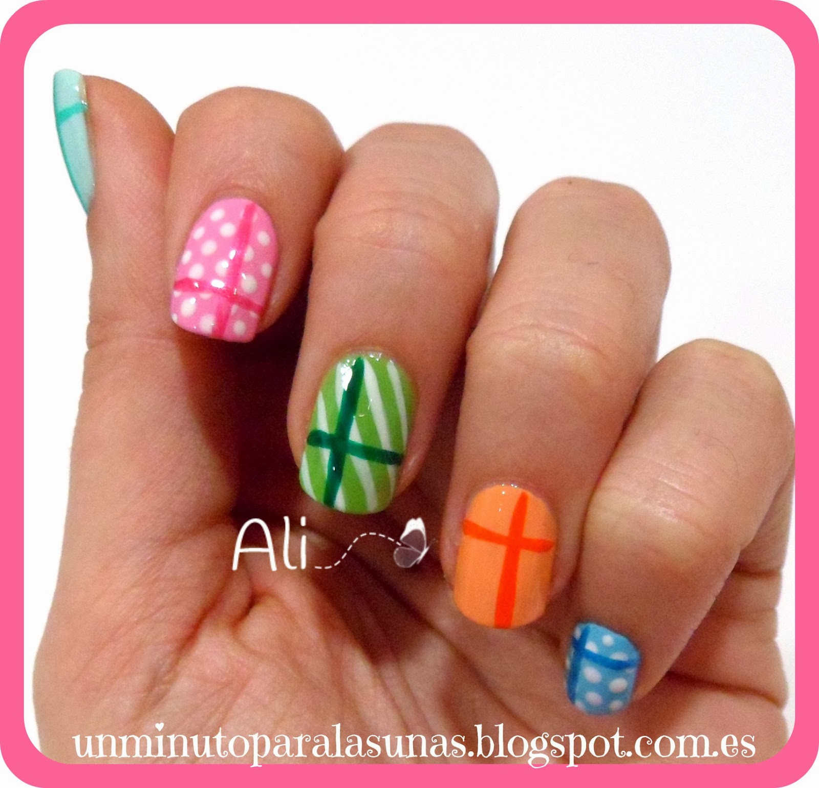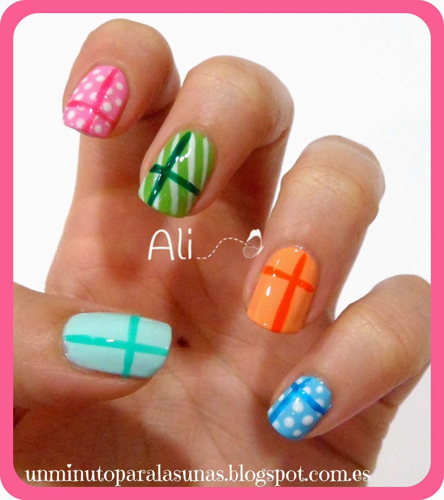 Bueno, ya veis que no tiene mucha complicación, son solo líneas y puntos a mano alzada. Las líneas hechas con los esmaltes de nail art y los puntos con un dotting tool o puntero. Lo único, un poco de paciencia para esperar que se vayan secando las capas.