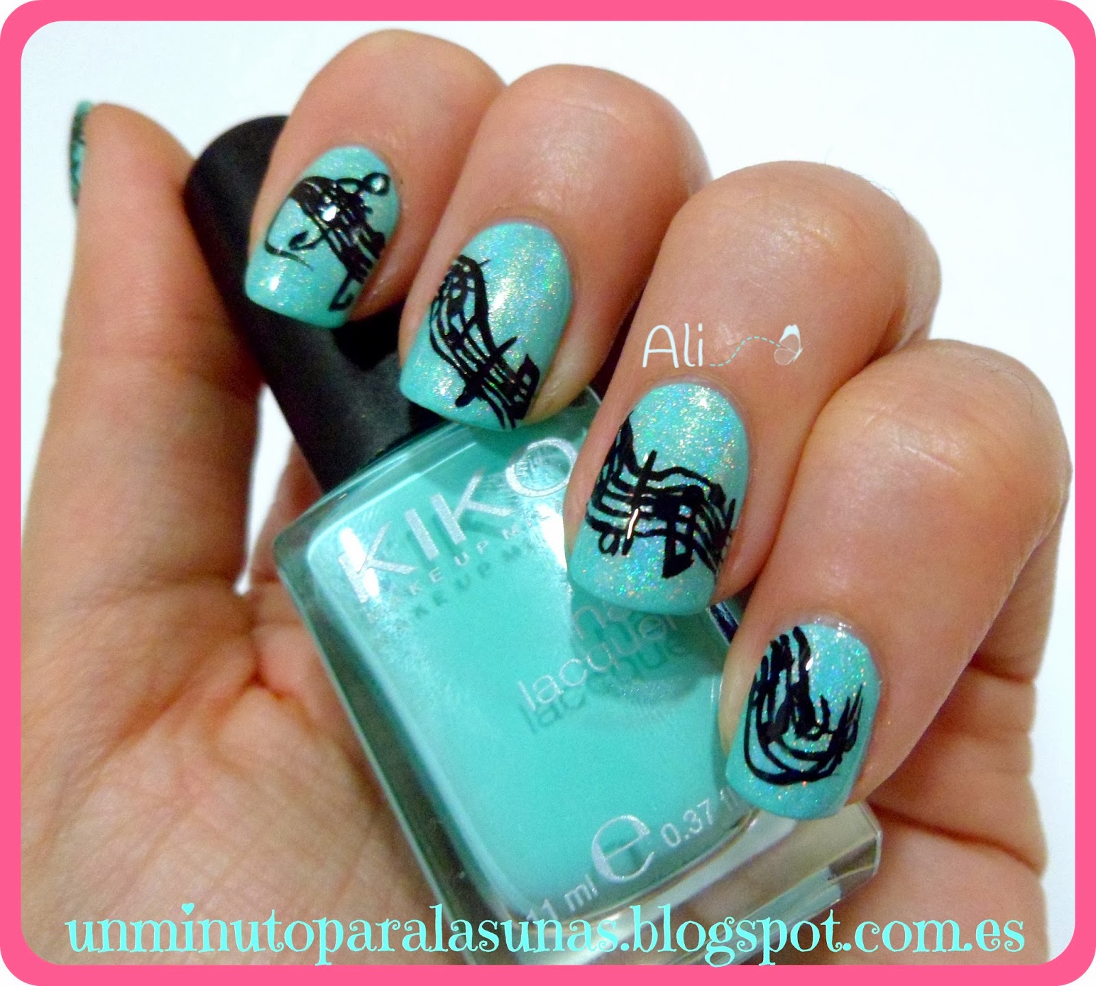 Como base he utilizado el verde menta de KIKO que no es un color muy navideño pero ya sabéis que me encanta. Y después quise darle un toque brillante con el topper holográfico de BornPrettyStore. Me encantan los holográficos, y este topper es genial porque puedes convertir en holográfico cualquier esmalte. Es genial!!!