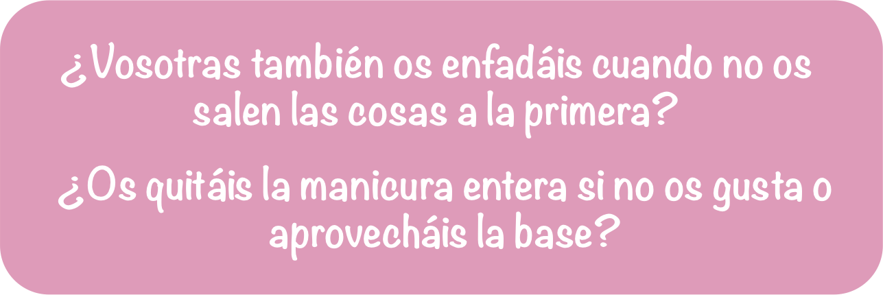 Así que la conclusión que saco de esta manicura es que si queréis probar una técnica nueva, intentadlo en una uña o dos, y si no os sale como queréis dejadla para otro día, pero no desaprovechéis esa base aplicadita y haced otra técnica que ya dominéis. Así no os frustraréis mucho.