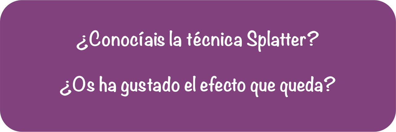 Para esta semana del reto he escogido la técnica Splatter, que significa algo así como «salpicada». Ese es el efecto que buscamos con esta técnica, como de manchas de tinta o pintura que han caído de manera desordenada y caótica. El dibujo que queda me encanta. De hecho hay incluso varias placas de estampación con este tipo de diseños.